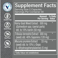 Complejo de Horny Goat Weed, Tribulus y Mucuna (L-dopa) para levantar la libido. Tonico y afrodisiaco para vitalidad sexual.