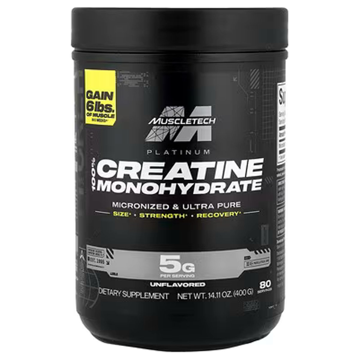 La Platinum 100% Creatine de MuscleTech es una creatina monohidratada micronizada de alta pureza, diseñada para maximizar tu rendimiento, aumentar la fuerza y potenciar el crecimiento muscular de forma efectiva.